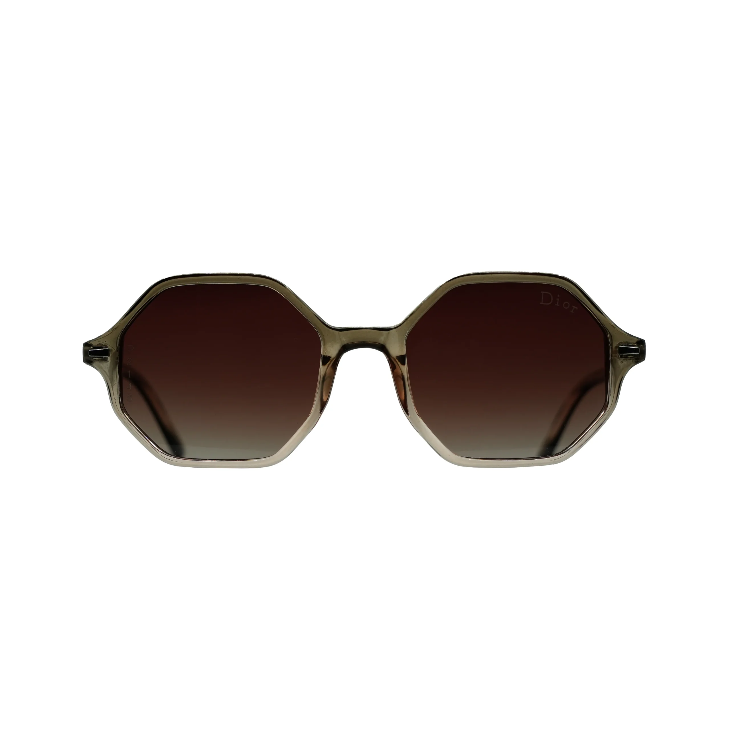 این عینک آفتابی دیور با طراحی هندسی هشتضلعی و قاب شفاف دودی ـ قهوه ای، جلوهای خاص، متفاوت و آیندهنگرانه دارد.
