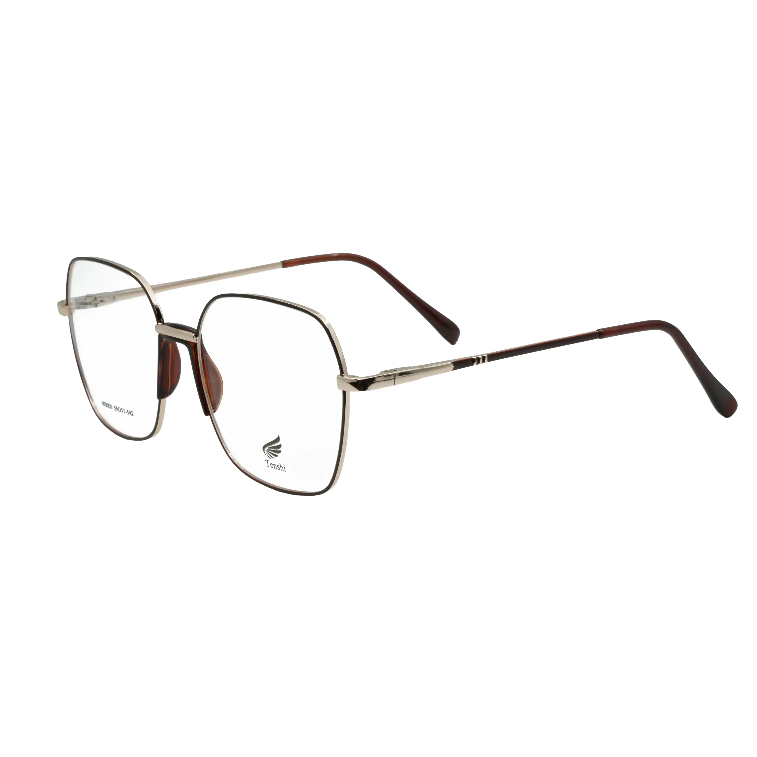این مدل با فریم فلزی ظریف و ساختار مربعی بزرگ، نماد مینیمالیسم معاصر و ظرافت مهندسیشده است. رنگ نقرهای براق فریم در ترکیب با پل بینی دوبل قهوهای و دستههای تیرهرنگ، جلوهای شیک و حرفهای ایجاد میکند. طراحی آن مناسب برای افرادیست که دنبال ظاهری هوشمند، دقیق و آراسته هستند. این مدل بهدلیل سبکوزن بودن و فرم گسترده، گزینهای ایدهآل برای چهرههایی است که نیاز به تعادل و سبکی دارند.